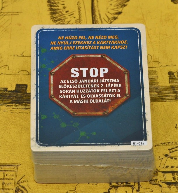 Az első januári játszma előkészületének 2. lépése során húzzátok fel ezt a kártyát, és olvassátok el a másik oldalát!