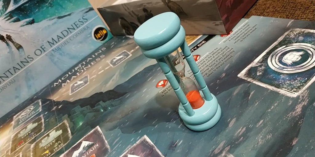 Erre a műveletre valós időben nagyjából 30 másodperce van a csapatnak, körülbelül ennyi idő alatt pereg le a homokóra, ráadásul csak ebben a szűkre szabott keretben engedélyezett beszélni a lapjainkról, a játék többi részében tilos. Igen, itt már alakul az ínyencség, de ez még mindig nem az igazi. Na nem mintha olyan könnyű lenne négy embernek egymást megértenie, ahogyan hadarva kiabálják be és mutogatják el, kinél milyen lap van és mire lenne még szükség a jutalomhoz. Na és itt lép a képbe a Mountains of Madness zsenialitása: az Őrület kártyák.