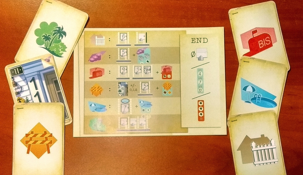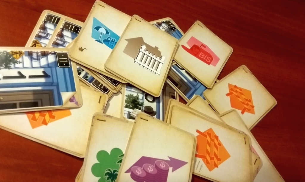 Fussuk át gyorsan a kártyák hatásait, mert igazából ezek jól megválasztott kombinációi adják meg a játék sava-borsát, illetve a győzelmi pontok többségét. A két legegyszerűbb a medence és a park. Mindkettő egy ház vagy utca esztétikai értékét növeli, más-más arányban ugyan, de hasonló alapelvek mentén. A "BIS" segítségével megkettőzhetünk egy házszámot ugyanabban az utcában, ez gyakorlatilag magyarul az A és B épületet jelenti. A gyakornok a bürokrácia erejét idézi meg, használatával a választott házszámunkat módosíthatjuk maximum kettővel pozitív vagy negatív irányban. A földmérő kerítést emel két tetszőleges ház között, és ezzel elérkeztünk a játék egy sarkalatos pontjához.