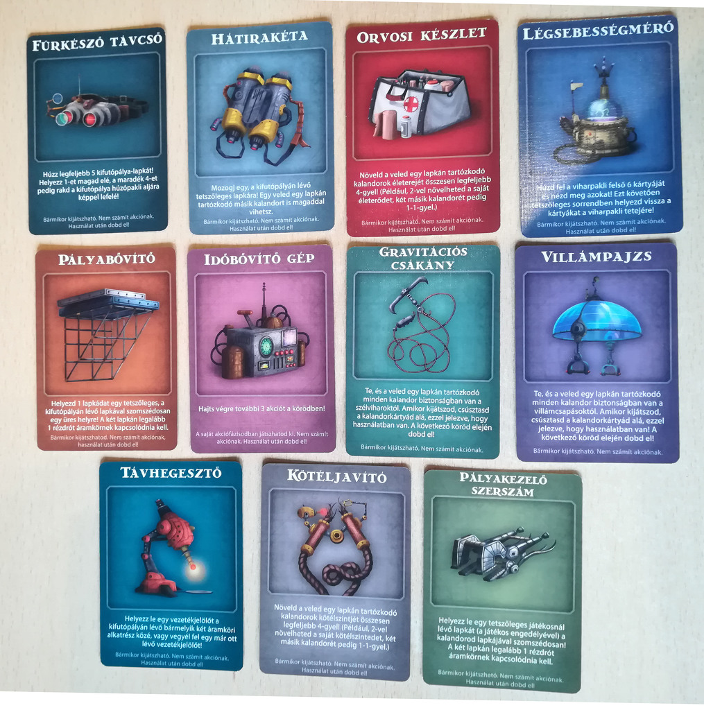 - Hegymászó: mozgás során magával vihet egy másik kalandort is. Tud közlekedni két szomszédos lapka közt abban az esetben is, ha felhő választja el őket egymástól. (Ez szélfúvás esetén is számít!)
