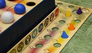 Ezután pontozás következik. Mindenki előrelépteti a figuráját a pontozósávon: