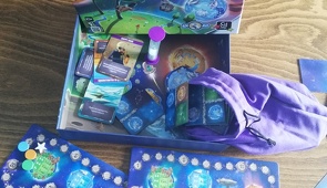 Praktikus, hogy a pontozást is kék, zöld és narancssárga korongokkal, valamint csillag alakú jelölővel végezhetjük el. Az XL-es lila húzózsák is tökéletesen betölti a funkcióját. Indokolt a terjedelmes méret, mert így kényelmesen elférnek benne a lapkák. Akik nem szeretnek védőfelszerelésre költeni, azoknak is jó hírrel tudok szolgálni. A káoszkártyák tárolására egy színes papírtokot találunk a dobozban.