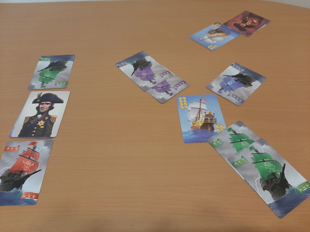 A kalózkapitány kártyák és az admirális kártya a legerősebb lapok a játékban. Aki ezek közül utoljára játszik ki egyet a következő körben elviszi a kereskedelmi hajót. A kereskedelmi hajó elvitele után ez a hajó a játékoshoz kerül, a támadó kalózhajók pedig egy felfordított dobópakliba kerülnek.