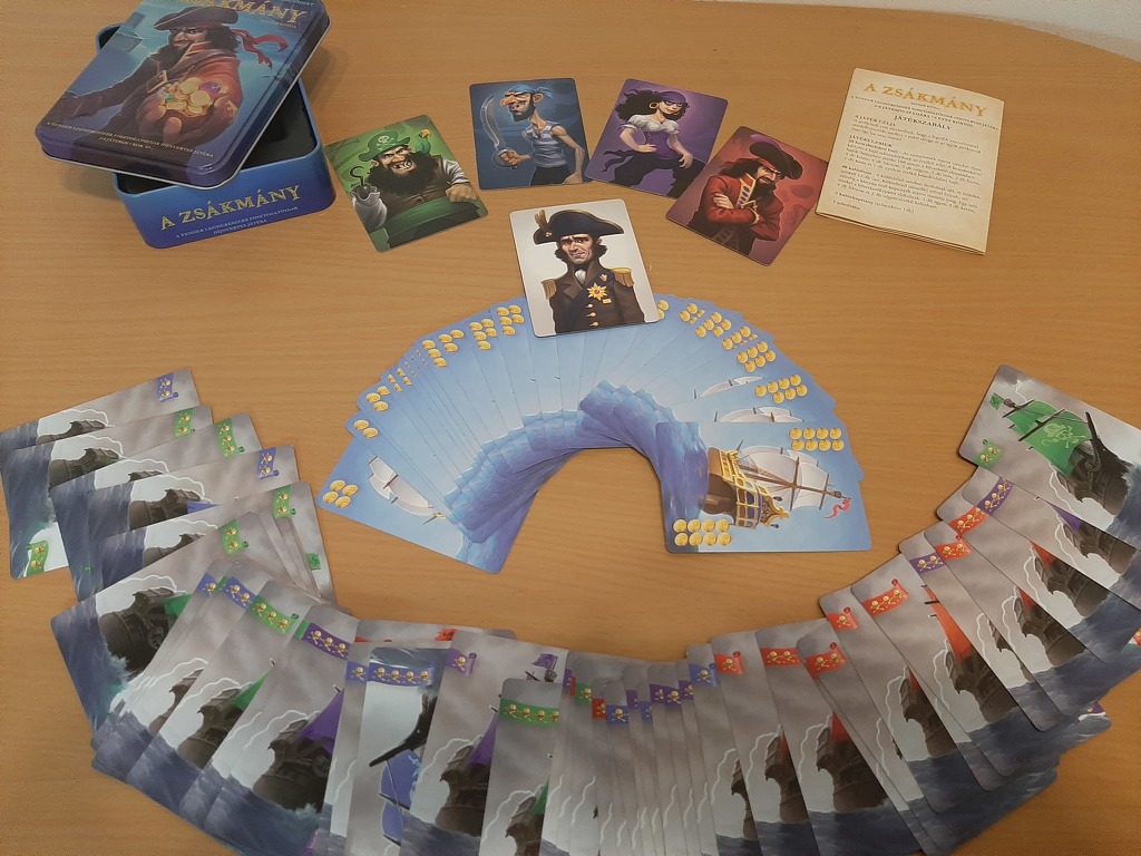 A Zsákmány, eredeti címén Loot egy 1992-es (ide s tova majdnem 30 éves) kártyajáték Knizia mester műhelyéből, ami nem mellesleg 2005-ben magyar Mensa Select díjat is kapott. Hozzáteszem, teljesen megérdemelten. Ahogy az alcíme is mondja: A tenger legmerészebb fosztogatóinak díjnyertes játéka.