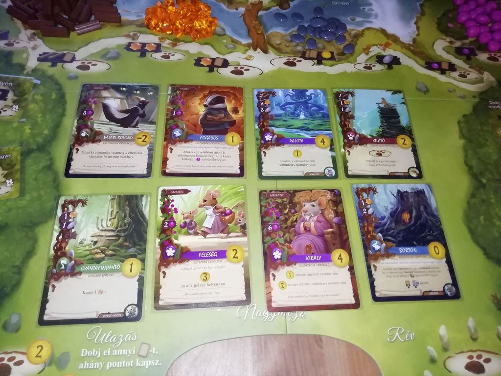 Minden kártyának költsége van, amit a kijátszáskor kell kifizetnünk. Bogyóval erdőlakókat, fa, gyanta és kavics segítségével pedig épületeket játszhatunk ki. A kártyák rendelkeznek különböző hatásokkal, például bónuszokat adnak kártyakijátszáskor, új akcióhelyként szolgálnak, vagy a végső pontszámításkor adnak többletpontokat. Ha jól időzítjük a lapok kijátszását és egymásra építjük hatásaikat, olyan motort építhetünk, ami a győzelemig repítheti a városunkat.