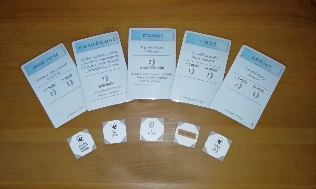 Bónuszkártyák formájában körünkben köszönthetjük: a viselkedéselemzőt, a gyűrűzőt, az etológust, a dietetikust és a városi tudóst, a céllapkák pedig már a kezünkben tartott lapok számát, vagy a tojás nélküli madarakat is díjazhatják.