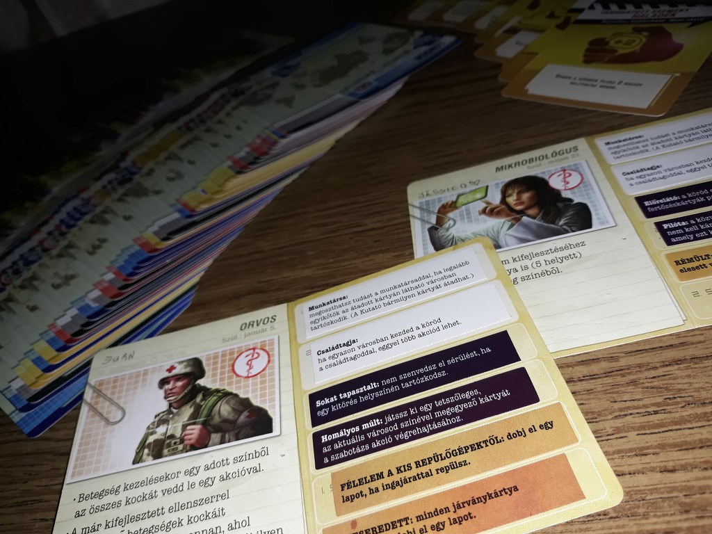 A játék végére viszont nagyon jól belejöttünk, a különböző kutatásokat nagyon komolyan vettük, gyorsan végrehajtottuk őket. Aztán mivel a vírus ellenszeréhez megszereztünk mindent, kifejleszthettük végre a rémes, mutálódott, és megfékezhetetlennek tűnő szupervírus ellenszerét. Beoltottunk minden fertőzöttet, és minden várost, és boldogan megnyertük a játékot.
