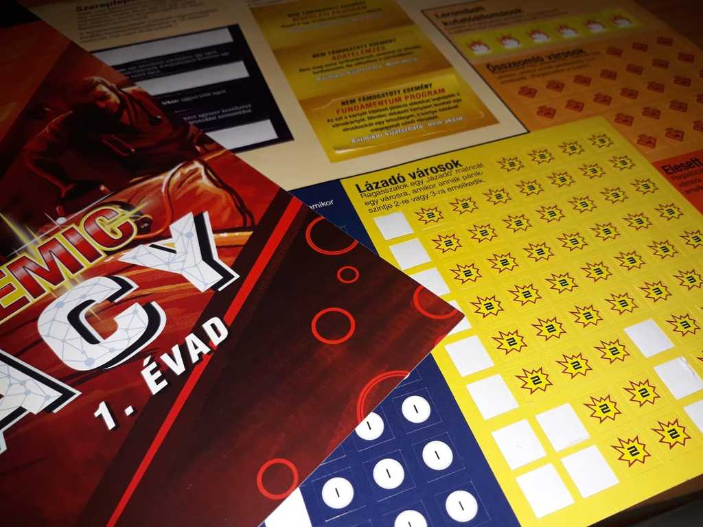 Most akkor komolyan vettem egy játékok, amit csak huszonnégyszer játszhatok, mert tönkretettem az egészet? NEM! Nyilván, a játékod minimális mértékben fog változni, mivel matricákat ragasztanod a kártyákra, szerepekre vagy a táblára muszáj. Viszont ha humánus módon szeretnéd ezt az egészet művelni, és a 12 hónapból álló kampány végén is szívesen Pandemiceznél még a példányoddal, simán megteheted. Csupán amikor a játék egy kártya széttépésére kér téged, ne tedd meg, egyszerűen tedd el a sutyiba, és ne használd többször. A kampány végén pedig egyszerűen le tudod szedni a matricákat bárhonnan. Sőt! Több olyan kiegészítőd lesz a kampány végén, amivel felturbózhatod a játékot, új variánsokkal színesítheted a játékmenetedet, szóval egy sokkal egyedibb Pandemiced lesz, mint az alapjáték! Megéri ez nekünk? Hogyne! Szóval, ha a Legacy jelleg tántorított vissza téged a vásárlástól, biztosíthatlak téged, hogy nem kell aggódnod.