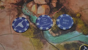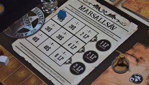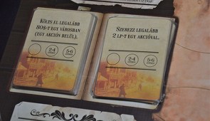 Apropó jellem. Na ilyen nincs a játékban. Sávok vannak, amelyek egyrészt a játékosok hírnevét (vagy hírhedtségét) mutatják (Legenda pontok), másrészt a törvényes vagy törvénytelen oldal melletti elkötelezettségüket. Ez utóbbiakat a marshall- és körözéspontok jelzik. Gondolom nyilvánvaló, hogy egyszerre mindkettő nem lehet egy játékosnak, de egy játékon belül állhat egyszer az egyik, máskor a másik oldalon. Ezek eltérően is jutalmaznak, mint ahogy a megfelelő sávokról leolvasható. A törvényes oldalról a bűn útjára lépni egy akcióval is lehetséges, viszont visszafelé ennek sokkal nagyobb ára van.