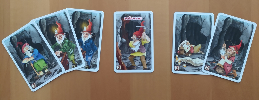 - 15 szerepkártya (4 kék aranyásó, 4 zöld aranyásó, 1 főnök, 2 geológus, 1 nyerészkedő, 3 szabotőr).