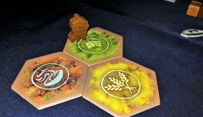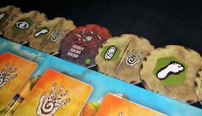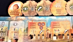 - Lépés: a játékos annyi lépést léphet a törzstagjaival a saját tájlapkáin, amennyit a lépés eredménysávon lévő jelölője mutat (1-3).