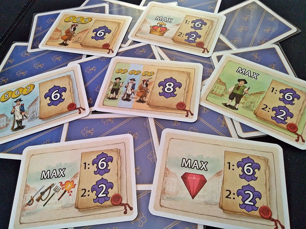 A negyedik és az utolsó forduló után pontozó körök vannak. A közbenső értékelés során megszámoljuk a karakterkártyáinkon szereplő drágaköveket és koronajelzőket, amik után győzelmi pontot kapunk. A katakombák bónuszaira 5 apródot húzunk a zsákból. Ezután következik a Bastille, ahol fegyvert választunk.