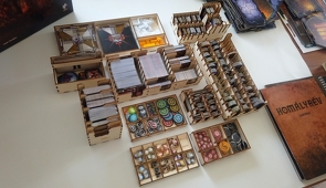A Homályrév tulajdonképpen egy asztali szerepjáték light verziójaként is felfogható, mivel nagyon közel áll a gyökerekhez. A különböző karakterek szépen kidolgozottak, így akik nem csak a megoldandó taktikai küzdelmek kedvéért ülnek le vele játszani, könnyen beleélhetik magukat, innen pedig már csak pár lépés egy komolyabb szerepjáték kipróbálása (ha minden igaz, idén érkezik az ötödik kiadású D&D, úgyhogy itt a remek alkalom). A Homályrév azonban nem csak az árával és zseniális megoldásaival érte el a nehézsúly kategóriáját, hanem konkrétan a fizikai beltartalmával is. Bődületes mennyiségű kártya és jelölő található a brutális méretű dobozban, és a dizájnra sem lehet panasz, a játékra jellemző hangulatot tükrözik egytől-egyig. Igaz, ennek hátulütője, hogy sokáig tart elő- és elpakolni. Ezt az időt azonban könnyen meg lehet spórolni (illetve az agybajt elkerülni), ha a TheGiftForge által készített fainzertet használjuk a játékhoz, amely sajnos jócskán megnöveli a ráköltött pénzt, azonban rendkívüli mértékben megkönnyíti a Homályrév csillió mütyürkéi közti eligazodást, méghozzá egy nagyon pofás, több elemből álló rendező-szett képében. A tartozékok elhelyezése logikus, látszik, hogy nem egy összecsapott fatákolmány, hanem vérbeli játékosok állnak a kiagyalása mögött.