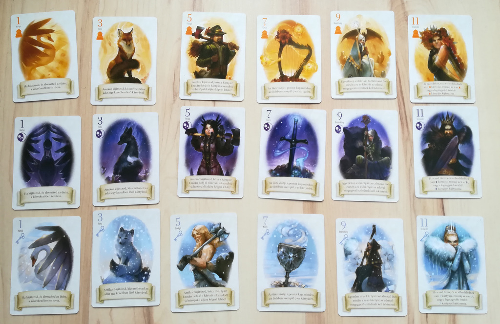 - favágó (5): kijátszásakor a játékos húzhat egy lapot a húzópakliból, majd ezután egy, a kézében tartott lapot a húzópakli aljára tesz,