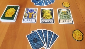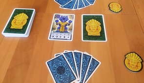- Játéktábla: természetesen az asztal közepén is el tudjuk helyezni a kincseket, de néha elég kényelmetlen tud lenni az ide-oda pakolgatásuk. Erre tökéletes megoldást nyújt a tábla, hiszen egyrészt minden kártyának és a húzópaklinak is megvan a pontos helye, másrészt a pereme miatt könnyebb odatenni és elvenni a lapokat.