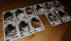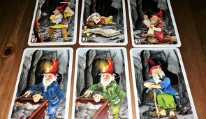 - Akciókártya lerakása. Háromféle negatív hatású kártya van, amellyel törpénk egy másik törpe valamelyik szerszámát (lámpás, csille, csákány) eltörheti. Addig nem rakhatunk le útkártyát, amíg legalább egy törött szerszám kártya van előttünk. Ezenkívül ki lehet játszani javító kártyákat, akár más játékosnak segítve ezzel. Kőomlást lehet előidézni, ezzel egy lerakott útkártyát eltávolítva a játékból. Aranyásók ezt a rossz irányba mutató utak eltávolítására használhatják, szabotőrök pedig az út folytonosságának megszakításához. Végül a térkép akciókártya kijátszásával (csak mi) megnézhetjünk egy célkártyát (amelyekből kettőn szénrög, egyen pedig aranyrög van), ezután erről azt mondunk a többieknek amit akarunk.