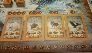 Nekem ez a kedvenc játékom. Beletettem már több mint 1.000 játékot, persze ennek a 95%-át online és még most sem unom. Sőt, most van amikor már minden lépésnek döntő fontssága van. Számomra azért érdekes ez a játék, mert ha 4 fővel játsszuk, akkor kimondottan családi játék kategória. Nem lehet különösen tervezni, mert mire rád kerül a sor, már a kártyákat, kunyhókat elvitték amit kinéztél...stb. Interakció nem is nagyon van négy főnél, hisz hárman is tehetnek ugyanazon helyre, feltéve ha marad szabad hely?! :) Viszont két főnél gamer kategória, mivel itt gondosan meg kell tervezni minden egyes lépésedet. Itt ki tudsz szúrni a másikkal, elfoglalsz olyan mezőt, ami neki nagyon kellene..stb. Annak ellenére mondom, hogy gémer játék, hogy van benne kocka, ami a szerncsét jelképezi, de a BGA-n számos statisztika mellett a dobóeredményeket is átlagolják. A győztes partimjaimnak jóval több mint a felét kisebb dobóátlaggal nyertem meg.