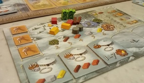 Az alapjátékban önmagában csak az épületeknek van győzelmi pont értéke, minden mást (szerszámok, mezőgazdaság, emberek) a civilizációkártyák pontoznak. Több azonos típusú civilizációkártyát is begyűjthetünk, amik ugyanazt a dolgot pontozzák, így a játék végére bőven 150-200 ponttal fogtok rendelkezni. A Jubileum csavart egyet a pontozáson, és már lehetőség van bizonyos helyeken plusz nyersanyagok beadásával extra pontokhoz jutni.
