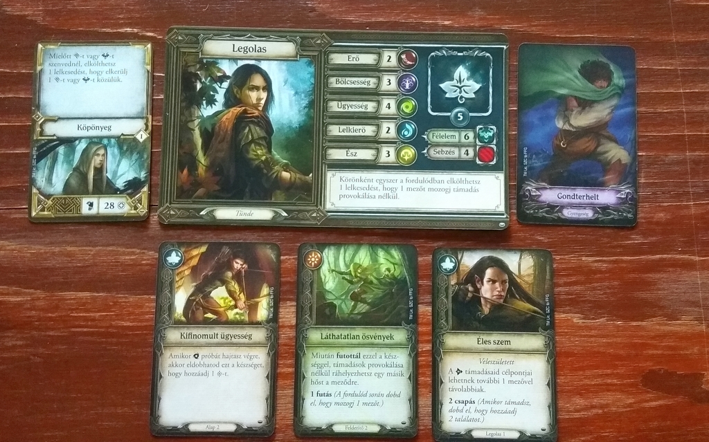 A kártyák kapcsán külön kiemelendő, hogy A Gyűrűk Ura: Utazások Középföldén nem használ dobókockát – blaszfémia, ugye?! Á, dehogy, csak egy újabb okos megoldás, ami viszont a hardcore kockarajongókat minden bizonnyal borzongással tölti el. Minden alkalommal, amikor próbára tesszük valamelyik tulajdonságunkat (például, hogy fel tudunk-e mászni egy magas fára, észrevesszük-e a felénk settenkedő goblint, sikerül-e levágni a támadó orkot, mielőtt az nyesne félbe, és így tovább), a paklink adott számú lapját fel kell csapnunk. Minél jobbak vagyunk valamiben, annál többet. Bizonyos lapok sikert adnak, mások semmit, vagy a sors lehetőségét, hogy ha beleadunk apait-anyait, akkor mégis sikert érjünk el.