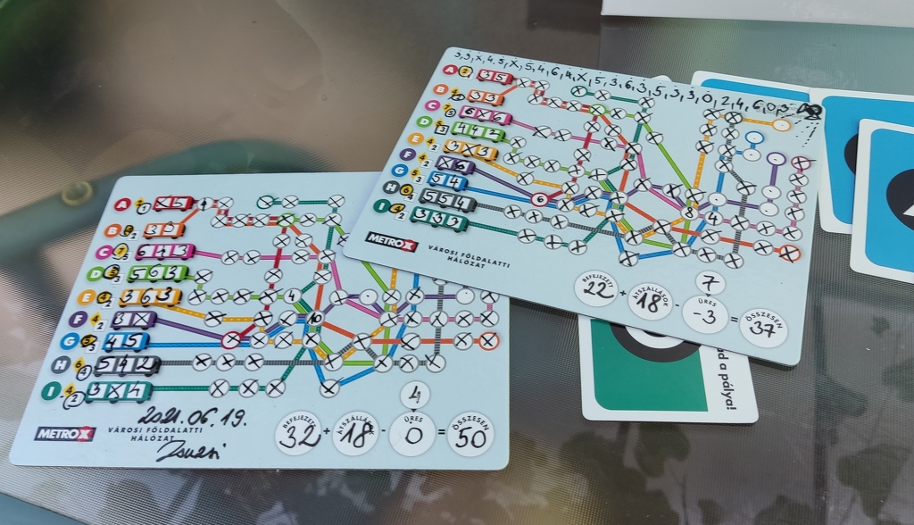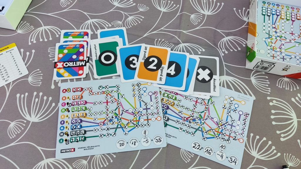 Nyilván a szerencsén is múlik, hogy a soron következő lap kinek kedvez jobban. A játék elején még aligha tudatos döntés, hogy mit hová ikszel az ember, viszont ahogy telnek be az állomások karikái, úgy kezd el egyre izgalmasabb lenni, hogy mikor jön fel olyan lap, amely egyiknek jó, másiknak rossz. Ha meg bedől az egész, akkor sincs baj, nagyjából húsz perc a Metro X játékideje, néha annyi sem – minden azon múlik, ki mennyit agyal. Pontokat a befejezett útvonalak és az átszállás kártyák ügyes kihasználása ad, amiből le kell vonni egy pontértéket az üresen hagyott mezők után. Akinek a legtöbb pontja van, az nyert.