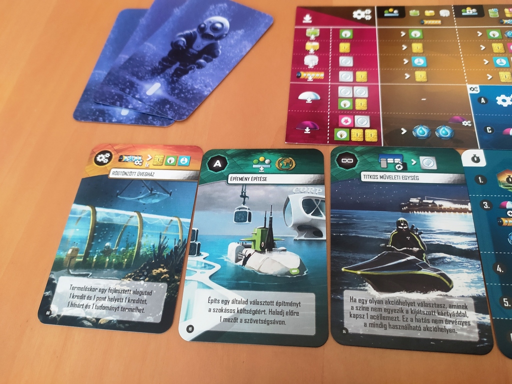 A hosszú játékidő talán nem nevezhető hiányosságnak, de sarkalatos pont lehet. A tengeri kolóniák létesítése a dobozra írtak alapján annyiszor negyven perc, amennyi tengermérnökünk van. Nos, nekünk az a tapasztalatunk, hogy ez közel sincs így, bár azt hozzá kell tenni, hogy mi általában tovább húzunk egy játékot, mint az átlag, és valószínűleg minél nagyobb rutinunk van a kupolavárosok építésében, annál gyorsabban megvagyunk azokkal. Azonban általában elmondható, hogy a tengerfenéken gyorsabban megy az építkezés, mint a Marson.