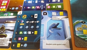Nekem is nagyon bejön a Víz alatti városok, nagyon várom, hogy egyszer meg is foghassam, és le is tesztelhessem. Nem is olyan nagy baj, ha gyengébb egy kicsit a minősége a játéknak, akkor, ha a működése jó és élvezetes. Viszont a térképes játéktáblákat szoktam szeretni, de ennél a játéknál ez egyáltalán nem fog meg. Olyan semmilyen. Semmi jelentősége sincs, hogy a föld térképe látható, lehetett volna valami érdekesebb is. (szóljatok, ha tévedek) Viszont a kártyák szépek. Csak azt sajnálom, hogy az eurós játékoknál mindig csak az ikonokat meg a jeleket nézem, mert ott van a lényeg, és a díszítés kicsit háttérbe szorul. Pedig az adna még egy kis pluszt ha jobban beleélném magam a történetbe. (Már amelyiknél van.) :)