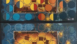 A játéktábla az eddigiekkel ellentétben két oldalán azonos térképet tartalmaz, csak különböző ábrázolásmódot használ. Egyik oldalán a már megszokott színekkel kitöltött körök láthatóak, a másikon pedig a kevésbé átlátható, de annál stílusosabb gyűrűs jelölés kapott helyet.