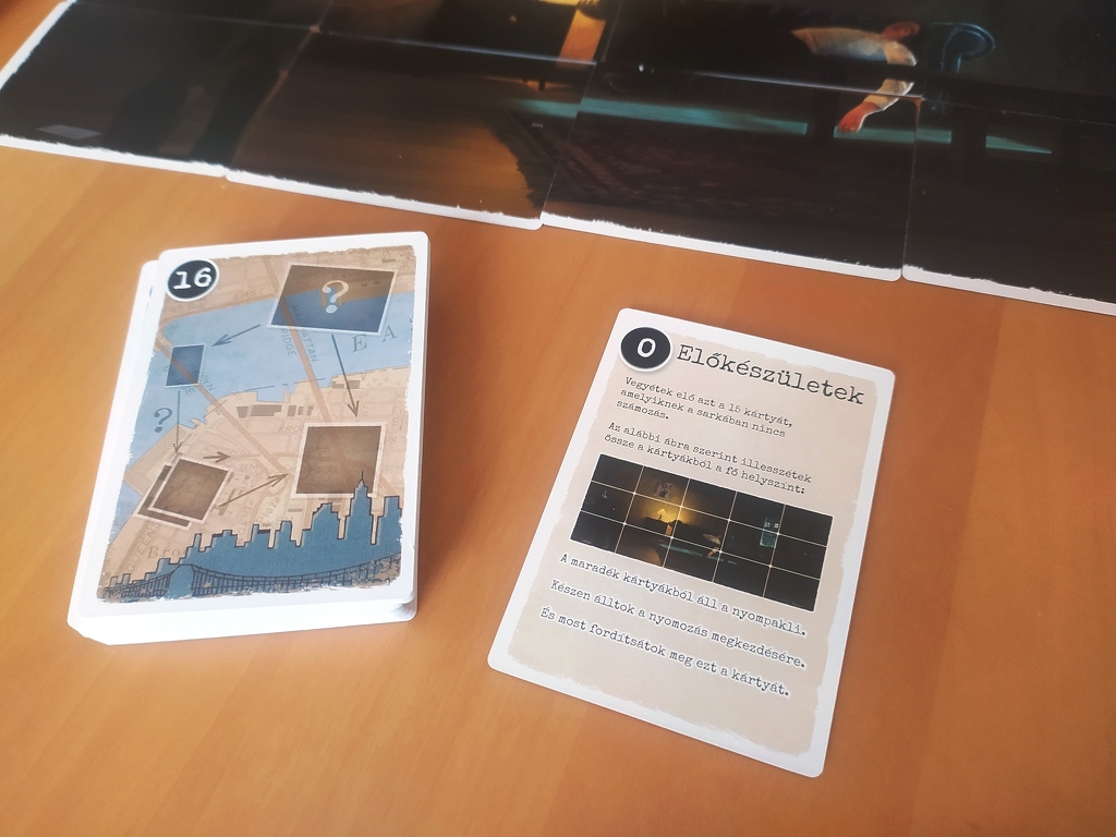A dobozban találunk egy lapot, melyen az előkészületekkel kapcsolatos instrukciókat, valamint a történet bevezetését olvashatjuk. Ezek alapján összeállítjuk az 55 kártya első tizenöt lapjából álló fő helyszínt. Ha ezzel megvagyunk, kezdhetjük is a nyomozást.