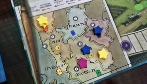 A táblára felkerült Toszkána térképe, melynek régióira csillagokat helyezve kaphatunk további bónuszokat, de legfontosabb eleme a játék végén aktiválódik. A játékos, aki többséget szerzett valamelyik régióban az megkapja az ott látható győzelmi pontot. Ez egy izgalmas változás, ugyanis ezzel a változással a végjáték fordulatosabb lett, amitől a 25 pontot elérő játékos nem nyugodhat meg teljesen.