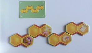 Termelés esetén a legyezőnket a kaptárunk egy tetszőleges mezejére helyezhetjük, aminek hatására minden szomszédos nektár lapka termel egy mézet.