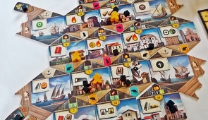 Szerintem a városlapkákon való mozgást a saját birtokodat reprezentáló játékostáblán nagyon jól ki lehet váltani. Egy csomó extra akciót végre lehet ott hajtani, olyanokat is esetleg, amik a városban már foglaltak. Nekem pont az volt az érzésem elsőre, hogy atya ég, mennyi lehetőség, melyikkel kezdjem, és milyen sorrendben aktiváljam a dolgokat.