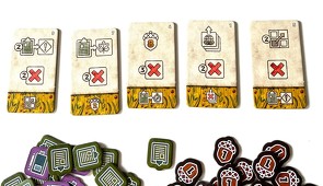 Viszont a kooperatív verziót erőltetettnek éreztem: a szóló módot játszhatjuk úgy, hogy egymást váltogatva kerülünk sorra, és együtt építünk egy közös tablót. Szerintem ez a változat valójában egy játékosra lett kitalálva, és fájdalmasan lett ráerőltetve a kooperatív felállás.