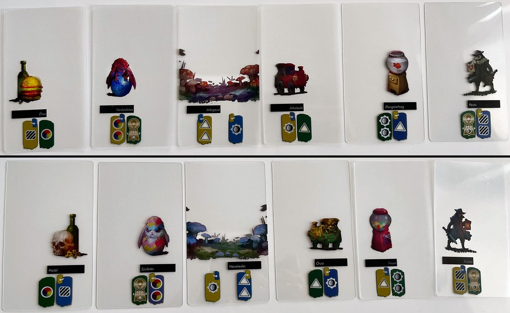 Nagyon tetszett, hogy behozták a játéktáblát és a kártyák sokszínűsége is bejött. Viszont az aranyszalag szerintem is túl sok pontot ad.
