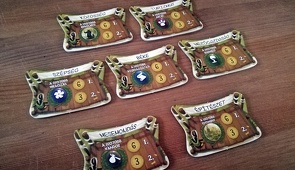Ezeken a táblákon tárolhattok minden kis mütyürt, amit a játék során megszereztek. A táblák kétoldalúak, és 6 féle grafikát tartalmaznak.