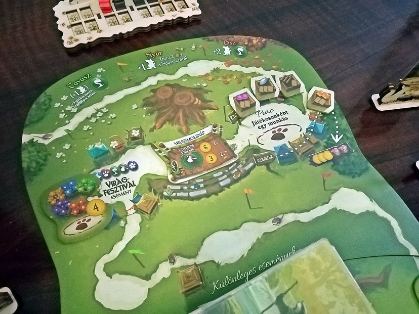 Használhatjátok az örökfa helyett, erre tehetitek az állatkáitokat, és az eseménykártyákat is. Ennek köszönhetően sokkal áttekinthetőbb a tábla.