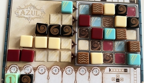 Ki ne hallott volna Michael Kiesling 2018-ban Év játéka díjat nyert absztrakt családi játékáról, az Azulról?! A nagy sikernek hála, azóta megjelent a játéknak három önállóan játszható verziója - Sintra üvegcsodái, A királyi pavilon, majd A királyné kertje –, valamint újrajátszhatóságot növelő és csúszásmentes táblákat nyújtó kiegészítői - Kristálymozaik és Színpompás Pavilon. A téma maradt a palota csinosítgatása: palotát és nyári pavilont csempéztünk, ablakot és kertet építettünk. Majd tavaly megjelent limitált példányszámban a Csokoládéműhely, ahol végre témát váltunk, és az édesszájúak nagy örömére a legkülönlegesebb bonbonválogatás összeállításán dolgozunk.
