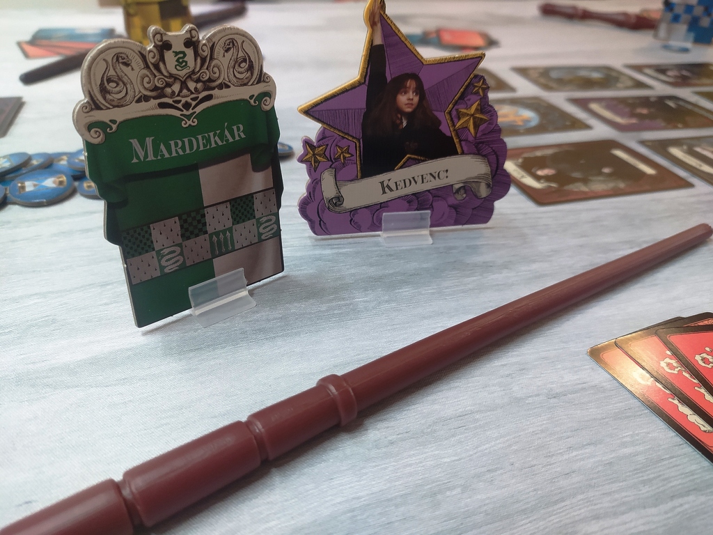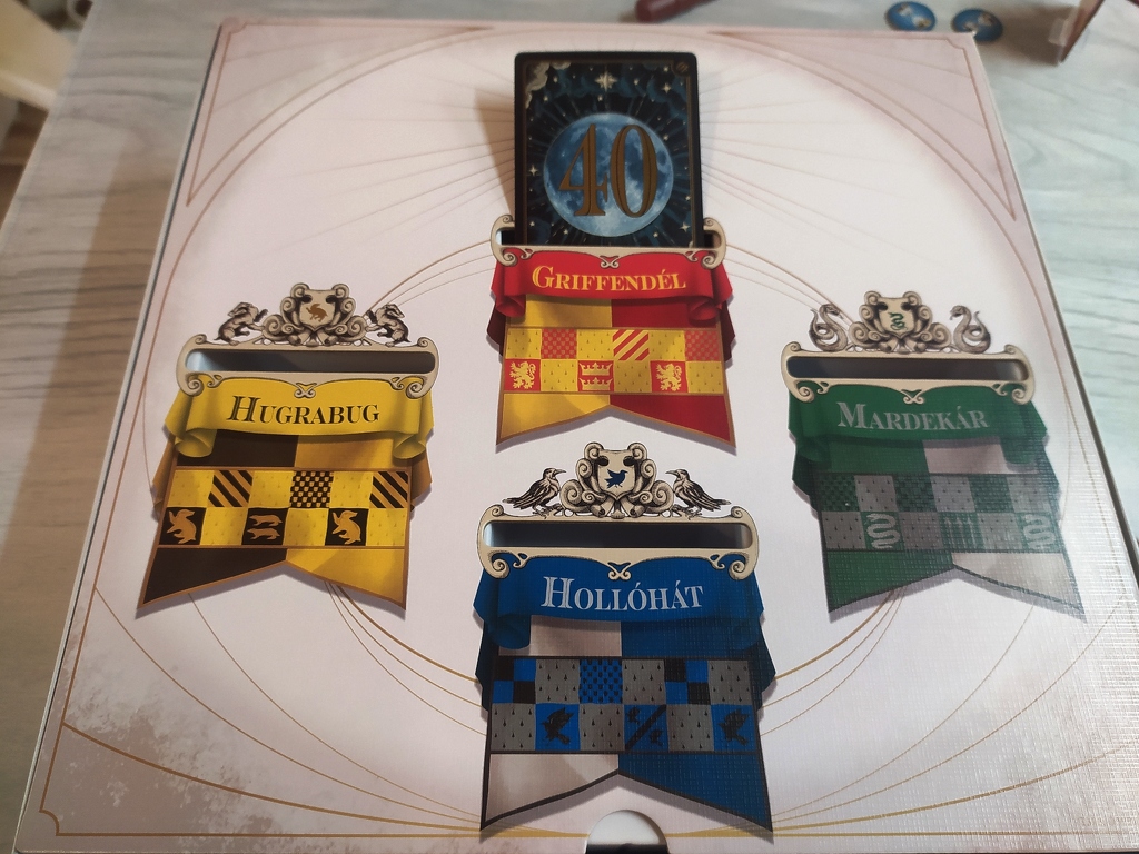 Kreatív megoldás, hogy a játékban aktív szerep jut a doboznak is, ugyanis a játéktáblát ráhelyezve a 4 ház dobozaként fog funcionálni, és a bezsebelt pontokat ebbe fogjuk gyűjteni, melyet hangosan be is kell jelenteni (40 pont a Hollóhátnak!). A kezdőjátékos a legstréberebb tanuló az iskolában a legjobb jegyzeteket készítő nebuló lesz, aki büszkén maga elé veheti a kedvenclapkát (így ő lesz ebben a fordulóban a kedvenc), és indulhat is a küzdelem!