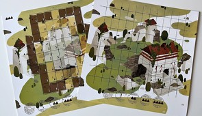 A doboz kettő kétoldalas központi táblát tartalmaz. Kettő, három és négy főhöz is tartozik egy alapoldal, de a legizgalmasabb az üres oldal. A játékszabály mutat példákat játékosszámnak megfelelő, jól működő palotákra, de megosztja az általános elvet is, amely alapján bátran tervezhetünk saját építményeket. Ennek, a szellem- és a sárkánykártyáknak, valamint a kövek véletlen elhelyezkedésének köszönhetően a játék újrajátszhatósága óriási.