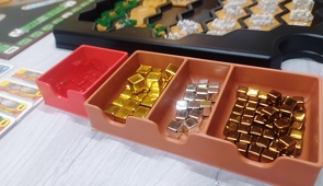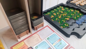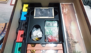 Az alapból hatalmas doboz talán legfontosabb tartozékai a különféle tárolórekeszek. Találunk közöttük többek között két tálcát a 3D lapkáknak, kártyatartót az összes lapnak, és több rekeszt a játékos- és erőforráskockáknak. Ezek igazán kényelmessé és görülékennyé teszik a ki- és bepakolást.