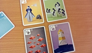 Másrészről nagyon egyedi dizájnja lett, amiről a bevezetőben ejtettünk is néhány szót. Sokan találkozhattunk már a magyarul is megjelent Origami kártyajátékkal, aminek az illusztrációi egyszerű számítógépes vektorgrafikák voltak, de olyannal még nem, ami ténylegesen papír szobrokat mutatott be. A játék arculatáért Lucien Derainne és Pierre-Yves Gallard origami művészek feleltek, akik igazi origami könyvekbe illő atmoszférát teremtettek a játéknak. Persze aki nem szereti ezt a világot, annak nem biztos, hogy tetszeni fog.