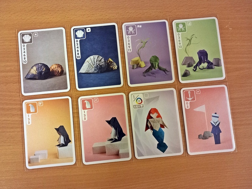 A kártyáknak négyféle típusa lehet. Vannak egyszerű szettgyűjtő lapok, mint a kagyló, polip, pingvin vagy a horgony. Ezekből minél több egyforma lapot szedsz össze, annál több pontot érnek.
