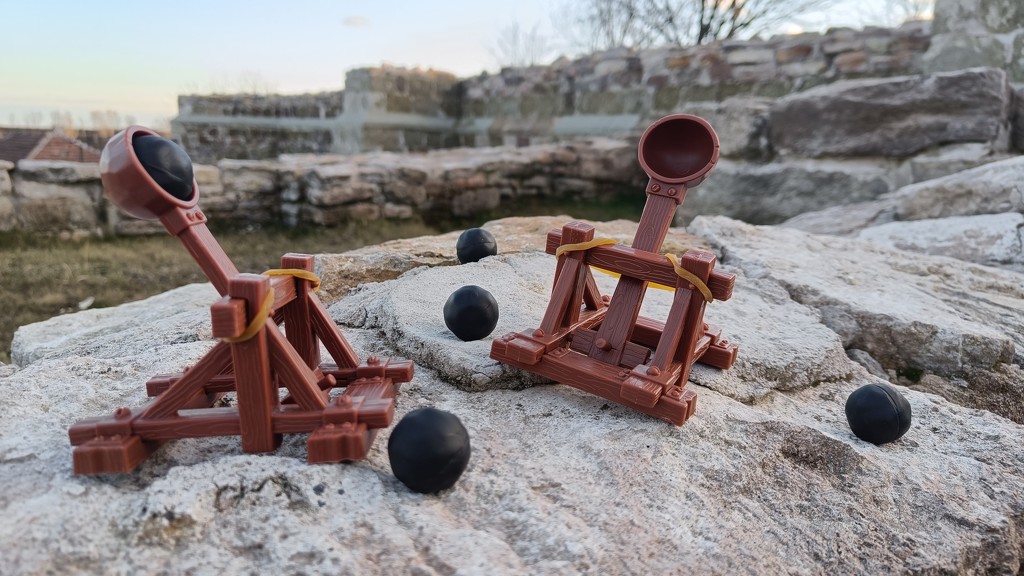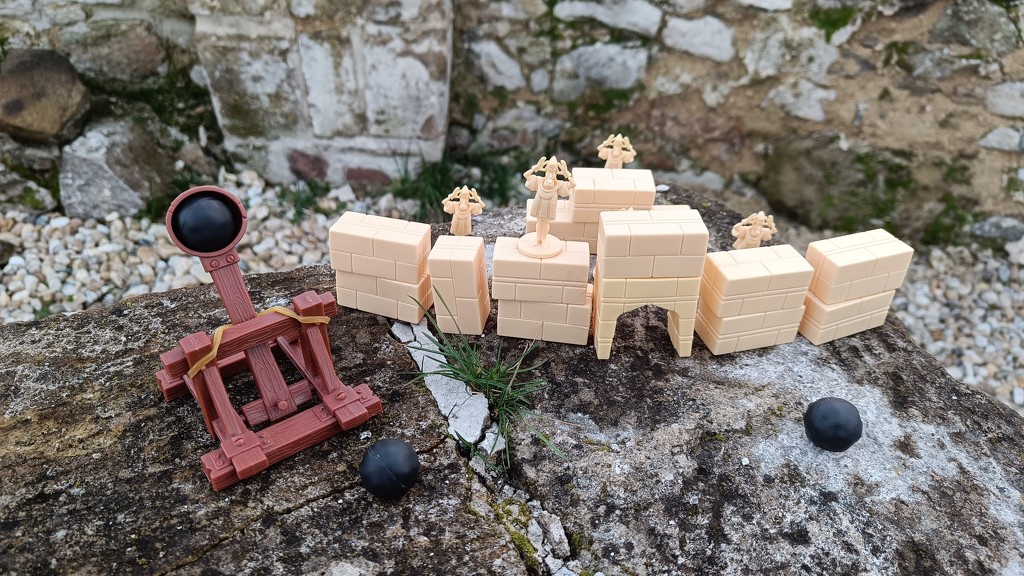 Nagyon tetszik ez a játék, különösen hogy a szokásos síkbeli játéktáblák helyett igazi térbeli várakat építhetünk. Majd az építkezés után jöhet a még izgalmasabb rombolás fázis, kiderülhet ki a talpraesettebb katona, ki használja ügyesebben a katapultot és nyeri meg a csatát.