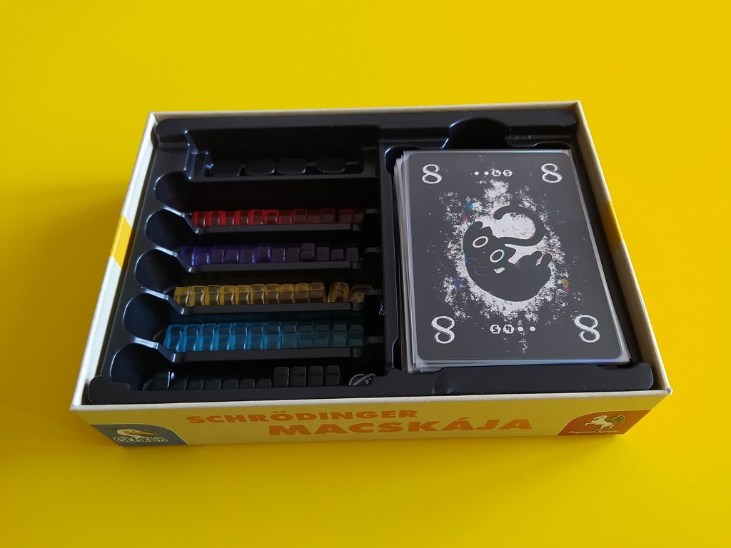 Ha van olyan játéktípus, amitől én automatikusan távol tartom magamat, az az ütésvívős. Ennek nem tudom megmondani az okát. Annak ellenére, hogy a középiskolás éveimet szinte végig ultizással és snapszerezéssel töltöttem (egészen addig, amíg divatba nem jött a póker), most, ha meglátom a trick-taking címkét egy játék adatlapján, máris görgetek tovább. Viszont, ha van olyan tematika, ami automatikusan vonzza az érdeklődésemet, az a macskák. Ennek az okát jól tudom, és a két kis bundás lakótársam is tisztában van vele. Nehéz helyzetbe kerültem, amikor megjelent a Schrödinger macskája: most hogyan álljak hozzá egy cicás-ütésvívős játékhoz?