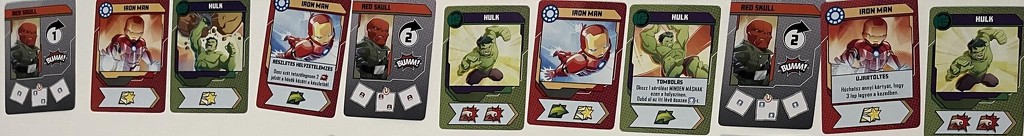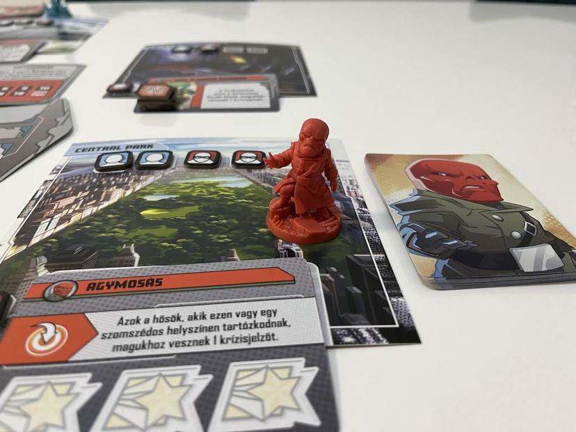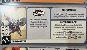 Viszont a mai napig Red Skullal (Marvel United doboz egyik gonoszával) tanítjuk a játék az újonnan ismerkedőknek. És válasszon akármilyen hőst ellene az illető (akár a 2. évadból), ha nem figyel, könnyen pórul jár. Red Skull elleni harc a játék összes finomságát megmutatja. A másik gonosztevő, Taskmaster egy igazán izzasztó alak a crisis tokenjeivel és a hősöket másoló kártyáival.