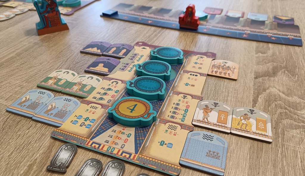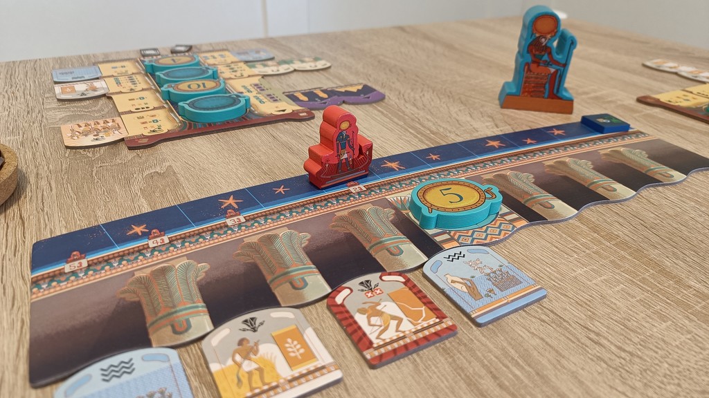 Természetesen van több csavar ebben a kellemes gyűjtögetésben, ez egyik pedig a négy különböző típusú katasztrófalapka. Ha ilyenhez jutunk, akkor azonnal el kell dobjuk a készletünkben található adott fajtájú lapkákat: a civilizáció, az emlékmű, a fáraó és az áradás lapkák számát kurtítják. A másik jelentős esemény, ami felkavarja az egyiptomi homokot, az a zsákból kihúzott Rá lapka. Ilyenkor azonnali licit indul, tehát nem mi döntünk az árverésről, valamint lépni kell egyet a napbárkával a Rá sávon, ezzel szép lassan közelítünk az adott korszak végéhez.