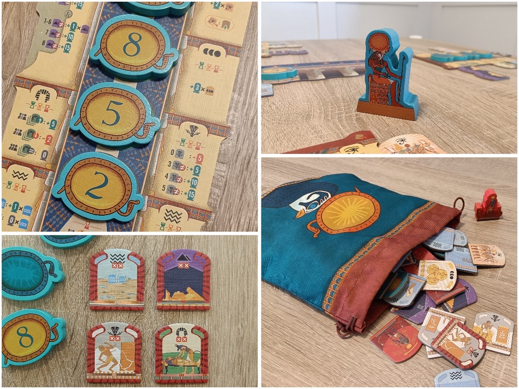 A 25. évforduló megünneplésének megadták a módját: gyönyörű a külcsín, kiemelkedő minőségűek a játékelemek, de már maga a játékszabály is prémium minőségű. A nagyjából 30-60 perces játszma után a dobozba alig lehet visszapréselni a grandiózus játékemeleket: impozáns Rá szobor, hatalmas napkorongok és millió lapka. A változatosság garantált: összesen 180 árveréslapka van a mutatós húzózsákban.