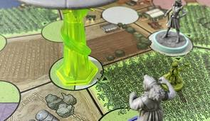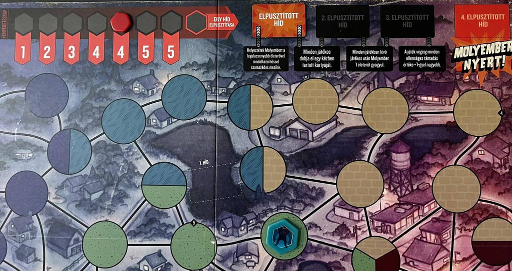 A fenyegetéssáv jelöli, hogy milyen közel jár a gonosz a célja eléréséhez - és minél közelebb áll hozzá, annál erősebb. Hogyha sikerül negyedszer is elérnie azt, vagy az összes harcos meghal, elbuktunk, a gonosz nyer.