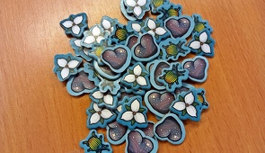 A meglepetéskártyákat nyersanyagok és kincsek segítségével tudod elkészíteni, amiért temérdek győzelmi pont lesz a jutalmad. A kártyák önmagukban is érnek pontot, de vannak olyan lapok is, amikért többlet pont jár, ha bizonyos nyersanyagokat gyűjtesz rá, vagy rendelkezel egy másik, meghatározott kártyával.