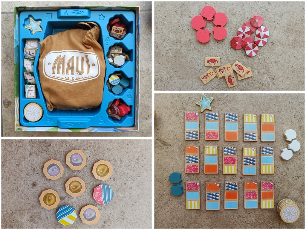 A Mauival igazi tengerparti fílinget, gyönyörű kivitelezést, színkavalkádot kapunk. Minden eleme minőségi, egyedül a játékos és pontozó táblák vékonyak (hello Azul!). Egyetlen negatívuma a játéknak – amit több fórumon más játékosok is nehezményeztek –, hogy a fehér és kék szín mellé a bordót és rózsaszínt választották. Utóbbi kettő, ha összekeveredik a dobozban elég zavaró tud lenni kibogozni melyik-melyik. 2-3 fős játéknál nem okoz gondot, tudunk úgy színeket választani, hogy elkerüljük a keveredést. Viszont így sem értem, miért nem választottak citromsárgát vagy zöldet?