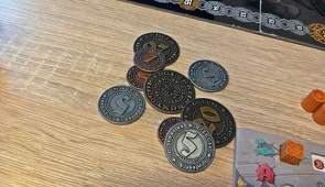 Továbbá ebben a játékban bár többféle erőforrás van, csak a pénzt fogjuk kezelni. Vagyis, ha kettővel növekszik a fa termelésünk, azt lelépjük a megfelelő sávon, majd bevétel akciónál, a fa aktuális értékének megfelelő pénzt kapjuk meg, építkezésnél pedig a fa értékének megfelelő pénzt kell befizetnünk.